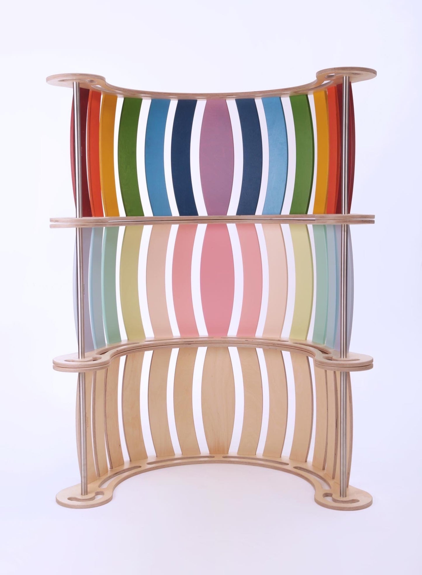Material: Baltic birch plywood. Treatment: Child-friendly finish - water-based varnish and Rainbow colours. The rocker is shipped flat packaged.