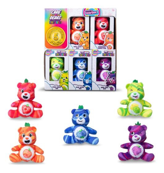 The Care Bears just got a fruity makeover! This special edition collector’s 5-pack fruit-themed Care Bears bring a burst of joy wherever they go—with new bright belly badges, fresh fruity colours, and the same snuggly softness you know and love. These bears are sure to bring some sweet smiles and hugs! Made with love and high-quality materials, these tiny 3″ inch treasures are designed for imaginative play and storytelling at home or on the go. Trade with friends to complete your collection or create heartwarming adventures that celebrate sharing and kindness. Whether you’re a lifelong fan or discovering the magic of Care Bears for the first time, Micro Teenies Care Bears are sure to bring BIG fun in a tiny scale! Perfect for kids and collectors ages 3 and up.