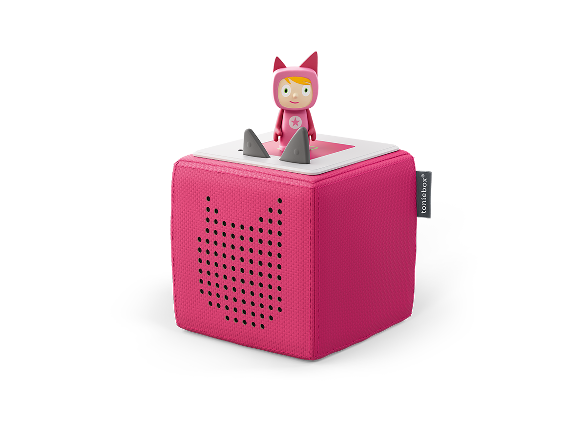 The Toniebox instantly recognises who's standing on top, and they have the magic key. The key unlocks the right audio files so the box can download them from the Toniecloud. The story will begin immediately. Once the LED turns solid green, the audio content has been completely downloaded, and you can play it anywhere without a Wi-Fi connection.